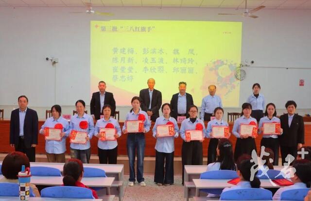 8点10分,“三八妇女节”表彰大会正式启幕。大会上,学校女工委陆青霜副校长宣读2026年“三八红旗手”表彰决定,随后分三批为30位获奖同志颁发荣誉称号和节日红包。这30位红旗手遍布集团公司与学校各个岗位,有深耕教育一线的中小学、幼儿园教师,有坚守后勤保障的饭堂、生活阿姨,有履职尽责的妇联代表,也有奋战在企业岗位的公司女职工,她们以高度的责任感在各自领域发光发热,用实干与奉献诠释着新时代巾帼风采。